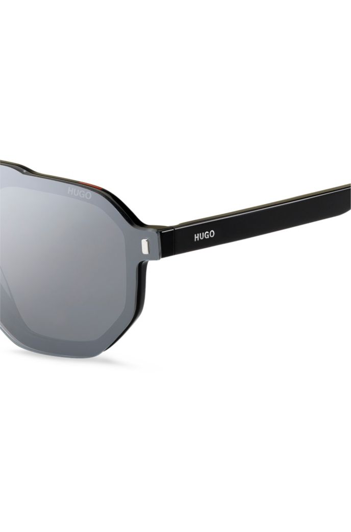 Hugo Schwarze Sonnenbrille Mit Doppelsteg Und Verspiegelten Clip On Glasern
