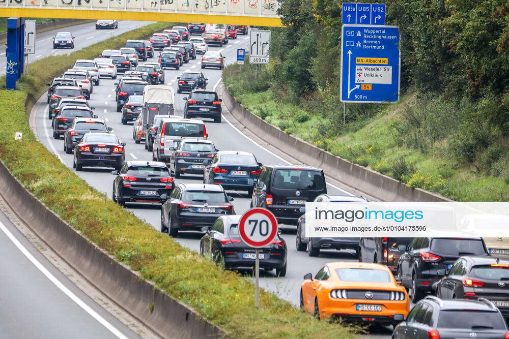 14 11 18 Essen Nordrhein Westfalen Ruhrgebiet Deutschland Blaue Umweltzone Autobahn 0 Beim Feierabendverkehr Mit Blick Richtung Essener Sta Stock Photo Alamy