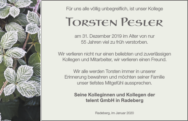 Torsten Pesler Traueranzeige Sachsische Zeitung