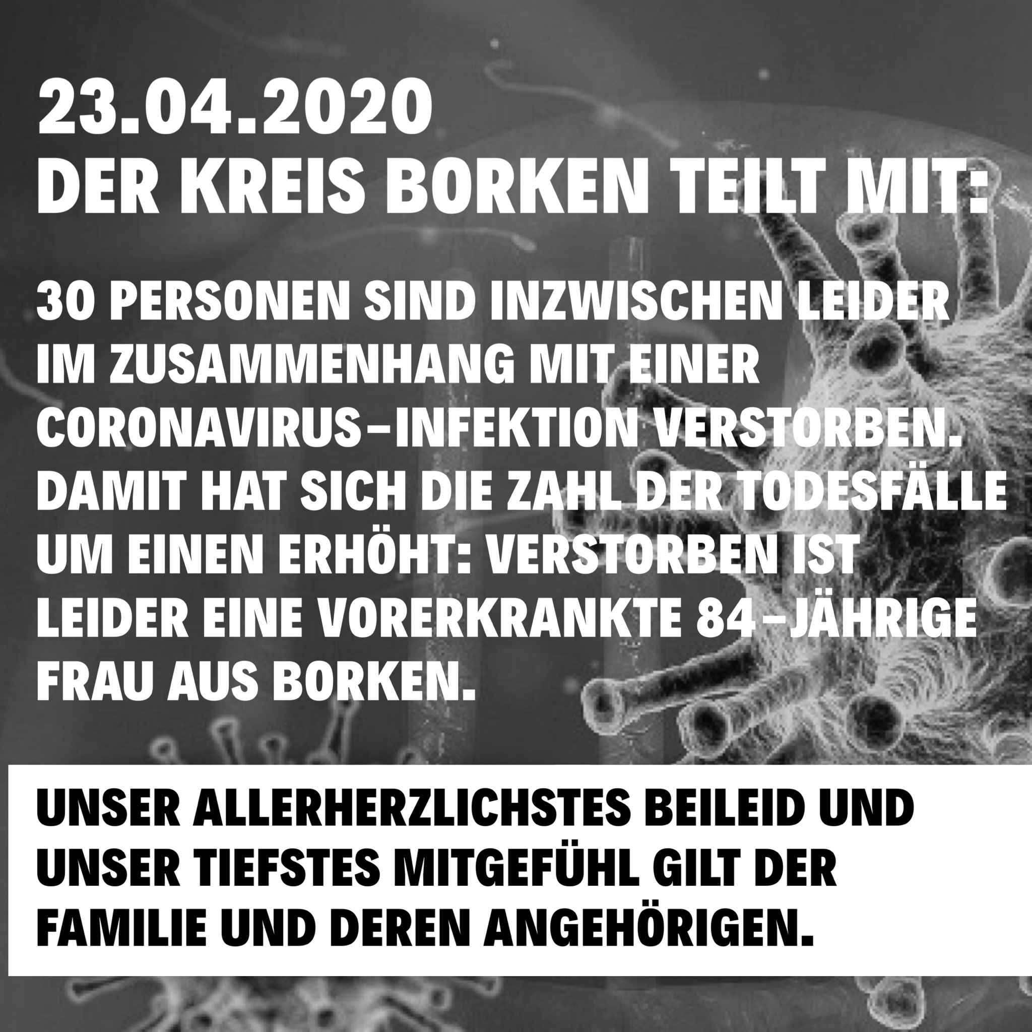 Stadt Borken 30 Pers Sind Inzw Im Zusammenhang Mit Einer Coronavirus Infektion Verstorben Verstorben Ist Leider Eine Vorerkrankte 84 Jahrige Frau Aus Borken Unser Allerherzlichstes Beileid Und Unser Tiefstes Mitgefuhl Gilt Der