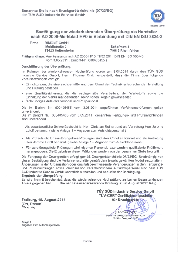 Nos experts des équipements sous pression mènent des audits de certification selon la règlementation AD 00 Merkblatt Avec notre réseau mondial d’experts spécialisés dans les techniques de vapeur, de pression et d’installations, vous faites le choix d’un service complet auprès d’un seul et même organisme. Renewal certificate AD00 Merkblatt HP0 Renewal certificate AD00 Merkblatt HP0 DVS GSI SLV renewed the Kersten Europe BV AD 00 Merkblatt HP0 certificate in connection with DIN EN ISO 342 The new certicate can be found at the download section of the website https. To EN ISO and a safety management system SCC* Version 06 richterwaermede Wir Schweißen alle gängigen Materialien bis zu den Druckstufen PN 3 / 2500 lbs auf Grundlage unseres.