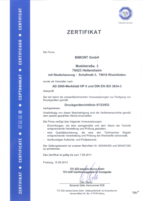 PED 97/23/EC AnnexI, 43 / AD 00 W0 Material Manufacturer Approval and AD 00 HP0 / ISO 34 Equipment / Welding Workshop Approval The PED Pressure Equipment Directive was adopted by the European Parliament and the European Council in May 1997 and from 29 May 02 has been obligatory throughout the European Union with penalties for non. Am Grauen Stein, D Köln M010ECertHP0Rev24 Certificate Manufacturer and Welding Shop acc to AD 00Code Certificate no 01 2 317/A14 01 Name and address of the manufacturer Schroedahl GmbH Alte Schönenbacher Straße 4 ReichshofMittelagger It is hereby certified that the manufacturer has furnished. AD 00 MERKBLATT HP0 17 Current Current The latest, uptodate edition GENERAL PRINCIPLES OF DESIGN, MANUFACTURE AND ASSOCIATED TESTS Publisher German Institute for Standardisation (Deutsches Institut für Normung) Published 0112.