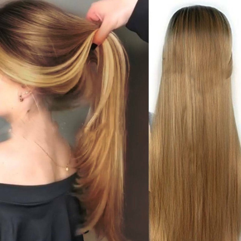 Damen Lang Perucken Ombre Blonde Langhaarperucke Gerade Wie Echthaar Perucke De Ebay