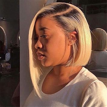 Haircube Charming Echthaar Perucke Fur Frauen Kurzes Blondes Haar Mit Schwarzen Wurzeln Amazon De Beauty