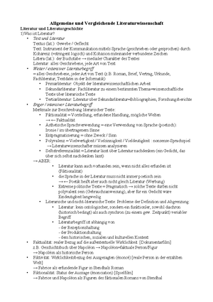Allgemeine Und Vergleichende Literaturwissenschaften Studocu