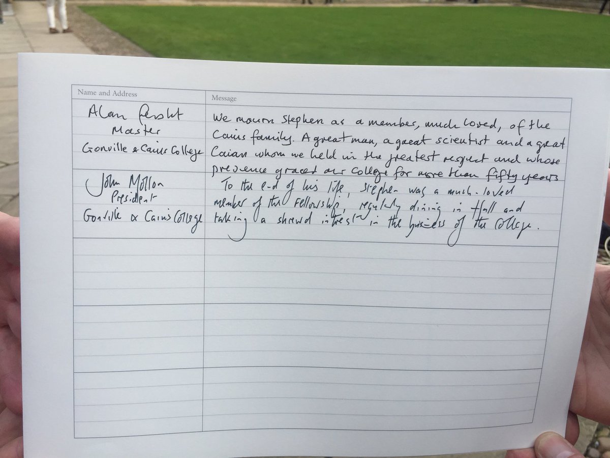Gonville Caius College Auf Twitter Comments In The Condolence Book For Professor Stephenhawking From The Master Of Gonville Caius College Professor Sir Alan Fersht And College President Professor John Mollon