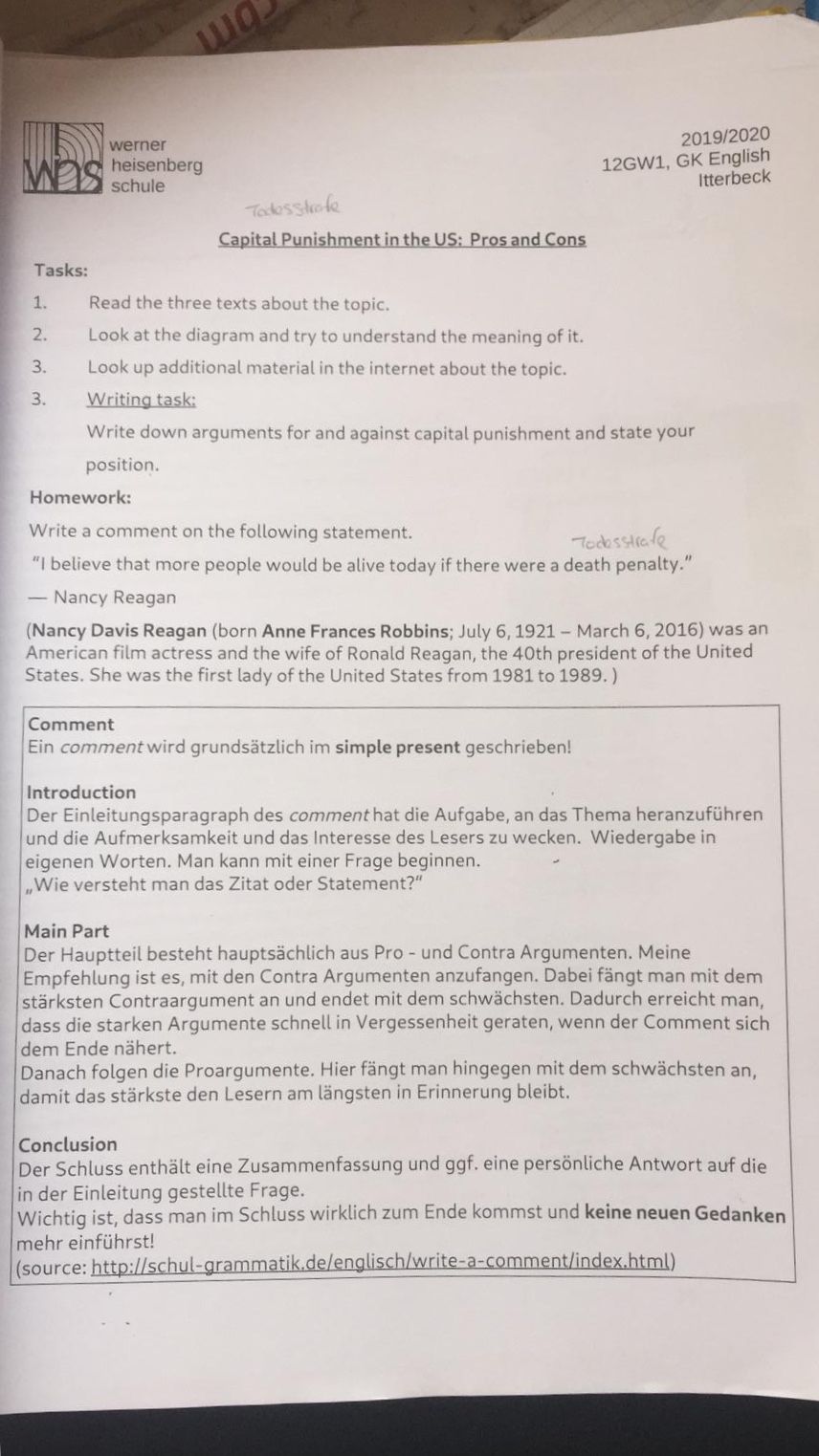 Ich Muss Ein Comment Schreiben Uber Diesen Statement I Believe That More People Would Be Alive Today If There Were A Death Penalty Gostudent