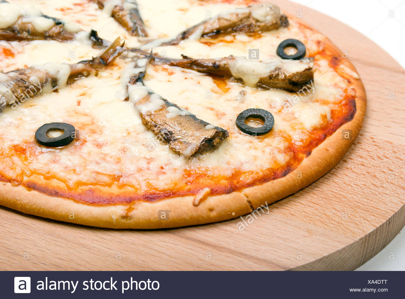 Pizza Mit Sardellen Und Oliven Stockfotografie Alamy