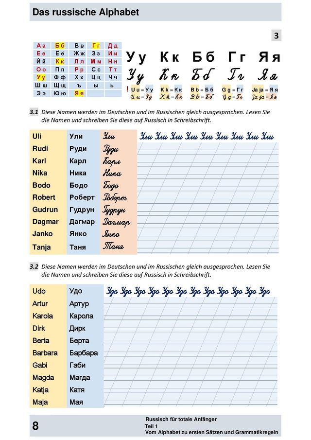 Auf YouTube findest du auch weitere Videos Suchbegriff "Russisch für totale Anfänger" Mehr Info zum Buch "Russisch für totale Anfänger" findest du auf ww. Lernen Sie Schritt für Schritt das russische Alphabet – vom einfachen Nachzeichnen bis zum selbständigen Schreiben ganzer Wörter Pfeile für die Schreibrichtung und Nummerierungen zeigen Ihnen die einzelnen Schritte beim Schreiben der Buchstaben an. Hast Du schon mal darüber nachgedacht, dass die Muttersprache zunächst als gesprochene Sprache gelernt wird Und das Erlernen einer Fremdsprache dagegen normalerweise mit Lesen und Schreiben anfängt?.