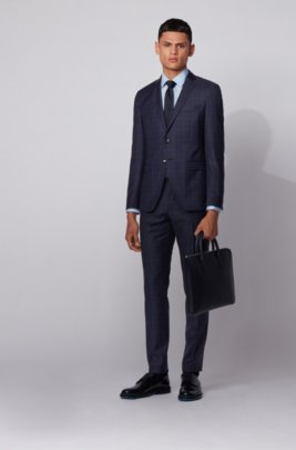 Boss Extra Slim Fit Suit In Checked Virgin Wool Serge