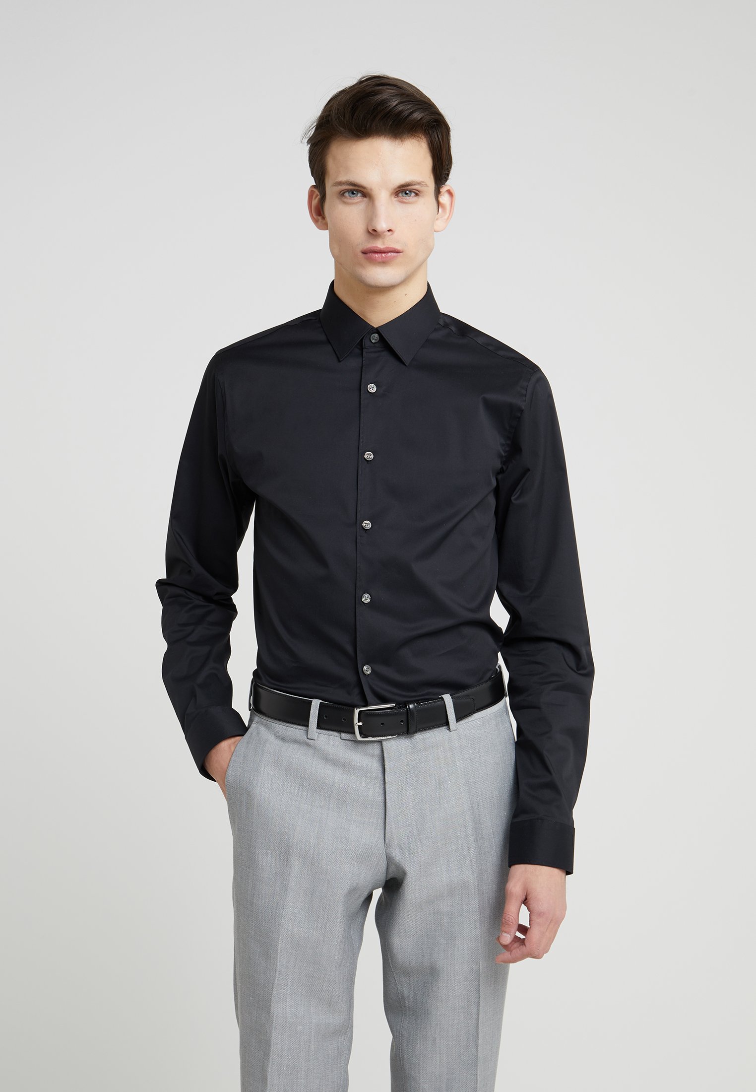 The Extra Slim Fit is our most contemporary, fitted shirt It is very closely cut to the body, creating a streamlined silhouette Cut from the finest cotton and perfected with a luxurious silk touch finish, our renowned men's formal shirts are sartorial staples. The Extra Slim Fit is our most contemporary, fitted shirt It is very closely cut to the body, creating a streamlined silhouette Cut from the finest cotton and perfected with a luxurious silk touch finish, our renowned men's formal shirts are sartorial staples. Extraslimfit shirt in stretch cotton Ero3 Essential HUGO Zoom out Zoom in Price $ 2 Colors Color Black Fit Extraslim fit Material information 95% Cotton, 5% Elastane View care instructions View details View details Size Size Please select a size.