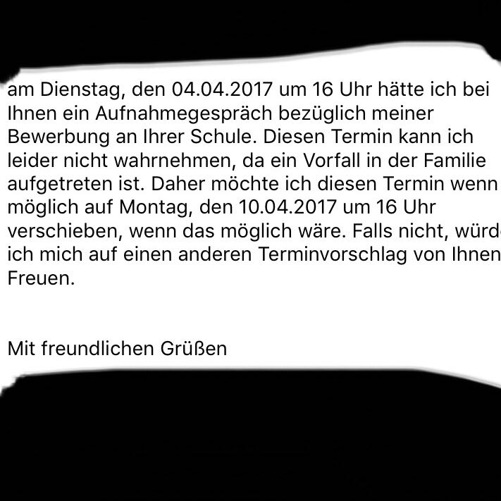 Velden uitlijnen ten opzichte van elkaar. Leuk dat u zich wilt inschrijven bij onze vereniging Afmelden graag per mail naar onze Ledenadministratie Bericht verzenden Leuk dat u zich aanmeld bij onze vereniging!. Ich habe per Post eine Einladung zu einem Vorstellungsgespräch bekommen und muss per EMail den Termin bestätigen Aber ich hab kein Plan wie ich das formulieren soll Hab gedacht vllt so Sehr geehrte Frau xxx, hiermit bestätige ich den Termin für das Vorstellungsgespräch für eine Ausbildung als Erzieherin am um 10 Uhr oder so.