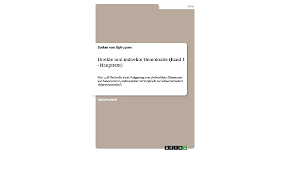 Direkte Und Indirekte Demokratie Band 1 Haupttext Vor Und Nachteile Einer Steigerung Von Plebiszitaren Elementen Auf Bundesebene Insbesondere Im Vergleich Zur Schweizerischen Eidgenossenschaft Amazon De Ophuysen Stefan Van Bucher