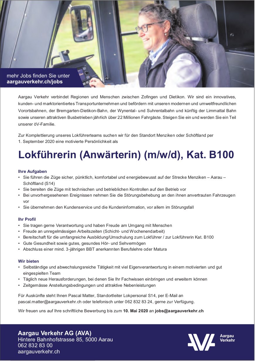 Lokfuhrerin Anwarterin M W D Kat B100 rgau Verkehr Ag Ava Gesucht