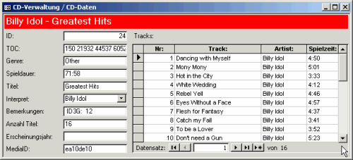 Maybe I will keep it simple by letting every album be created with some kind of password that the user can define when uploading the log This way they can edit or delete their entries but not others There have been other deletions in the past, mostly by people who think that vinyl, MP3 or selfimproved versions of albums should not be there. Kostenloser Ripper mit CDDB (CDDatenbank) Der Free Ripper liest AudioCD's ein und holt die Titel, Album, Genre, Jahr, und KdoDsnstlerDaten aus einer InternetDatenbank Die Informationen werden beim Rippen in die MP3Dateien geschrieben. Mit CD Cover drucken sie Hüllen (Booklets) für ihre selbstgebrannten CDs, DVDs oder auch VHSVideo Cover Der Sinn ist es, fertige Bilder zu laden und entsprechend auszudrucken Die Coverbilder müssen sie vorher selbst einscannen oder oft finden sie diese auch im Internet Datenbank zur Erfassung und Verwaltung von DVDs und.
