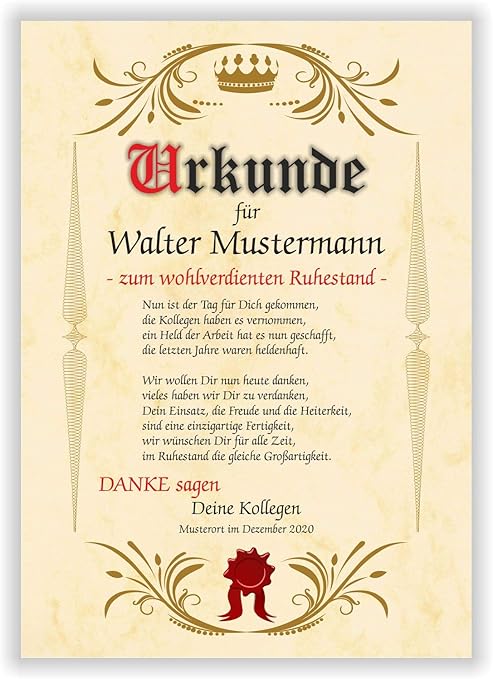 Ruhestand Urkunde Personalisiert Geschenk Karte Zur Rente Abschied Berufsleben Amazon De Burobedarf Schreibwaren
