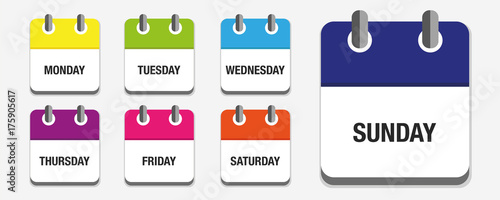 Kalender 7er Set Wochentage Englisch Bunt Kaufen Sie Diese Vektorgrafik Und Finden Sie Ahnliche Vektorgrafiken Auf Adobe Stock Adobe Stock
