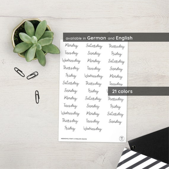 Schriftart 5 Datum Aufkleber Wochentage In Englisch Und Deutsch Fur Bullet J Handlettering Und Typografie
