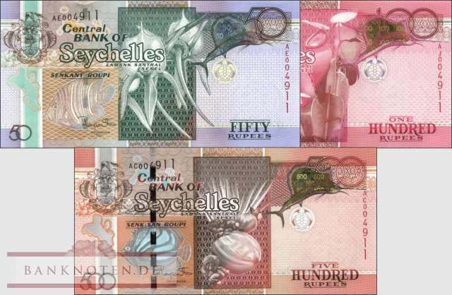 Banknoten De Seychellen Seychellen 50 500 Rupien 3 Banknoten Banknoten