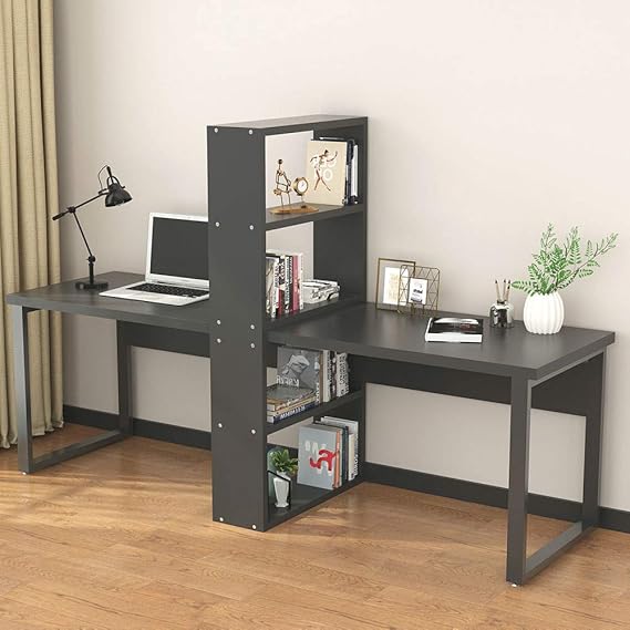 Little Tree Computerschreibtisch Mit Ablageflachen Fur Zwei Personen Extra Gross Doppelter Schreibtisch Mit Stauraum Fur Zuhause Und Buro All Black Amazon De Burobedarf Schreibwaren