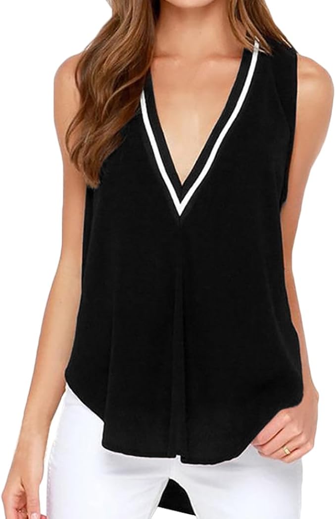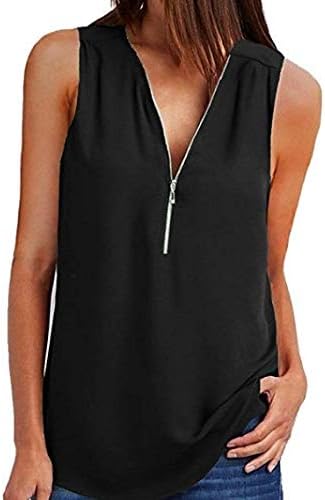 M G X Damen Bluse Armellos Chiffon Tops V Ausschnitt Reissverschluss Fashion Shirt Casual Weste Grosse M Schwarz C Amazon De Sport Freizeit