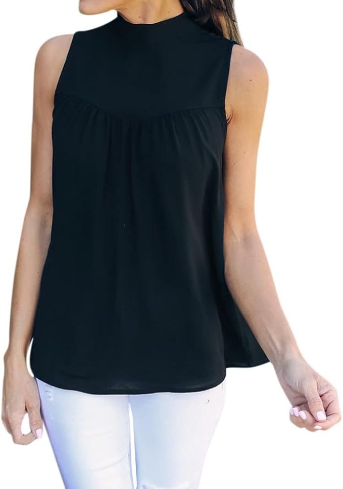 Fleasee Damen Bluse Chiffon Sommer Rundhals Armellos Tunika Oberteile Ein Super Bequeme Lockere Chiffon Bluse Schwarzes Kleid Anziehsachen Das Kleine Schwarze