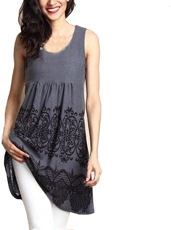 Todaies Damen O Kragen Bedruckt Armellos Lose T Shirt Bluse Schwarz Schwarz 4x Gross Amazon De Bekleidung