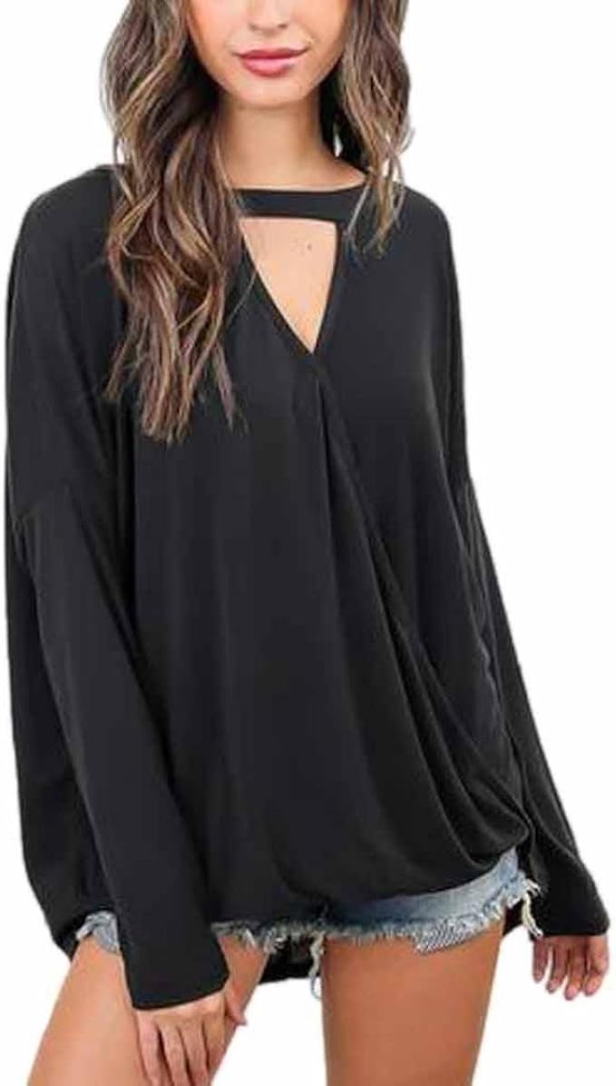 Amoretu T Shirt Damen Armellos V Ausschnitt Knopfleiste Bluse Solide Tunika Sommer Tops Langarm Schwarz M De 42 44 Amazon De Bekleidung