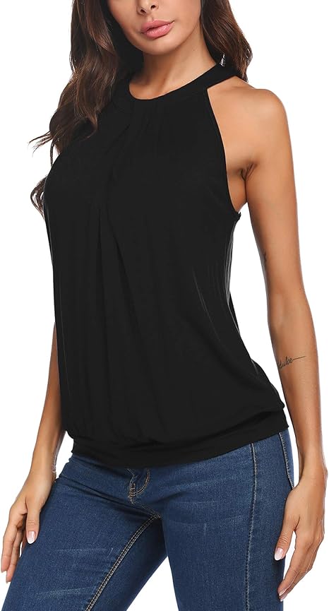 Parabler Damen Oberteile Falten Top Frauen Bluse Armellos Tunika Lose Tank Casual T Shirt Sexy Neckholder Tops Schwarz S Amazon De Bekleidung