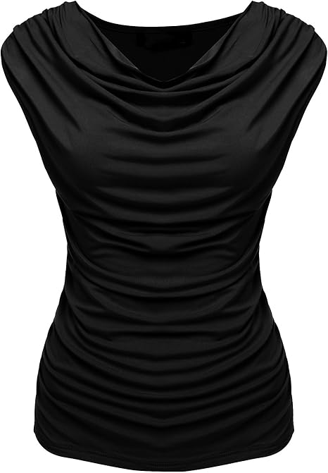 Keland Damen Armellos Shirt Bluse Mit Wasserfall Kragen M Schwarz Amazon De Bekleidung