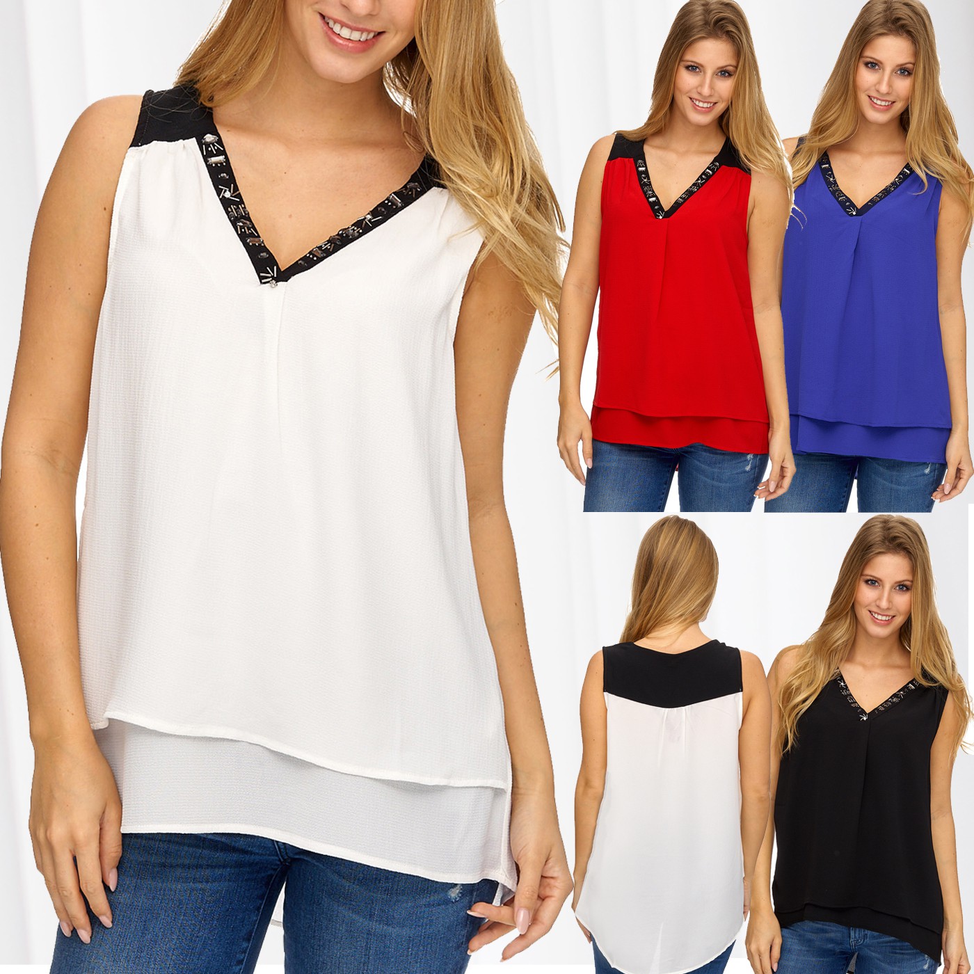 Damen Bluse Top Asymmetrisch Hinten Lang Vorne Kurz Pailletten Armellos Locker Ebay