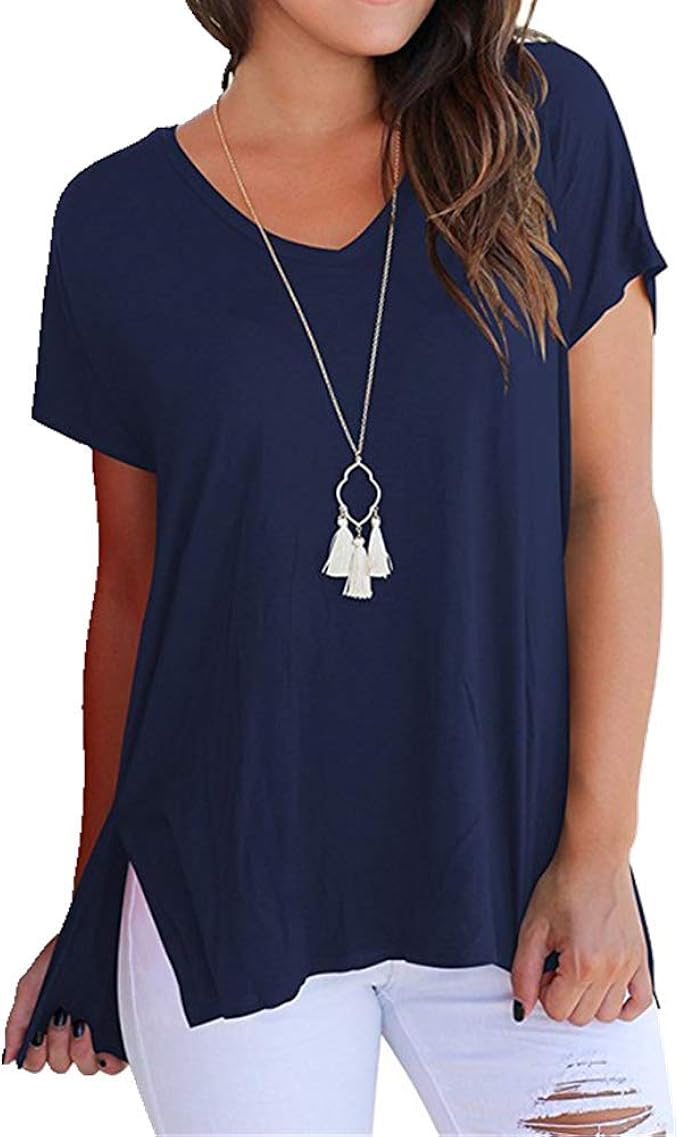 Nobrand Damen Vorne Kurz Hinten Lange Seitennaht Split V Ausschnitt Kurzarm Lose T Shirt Amazon De Bekleidung