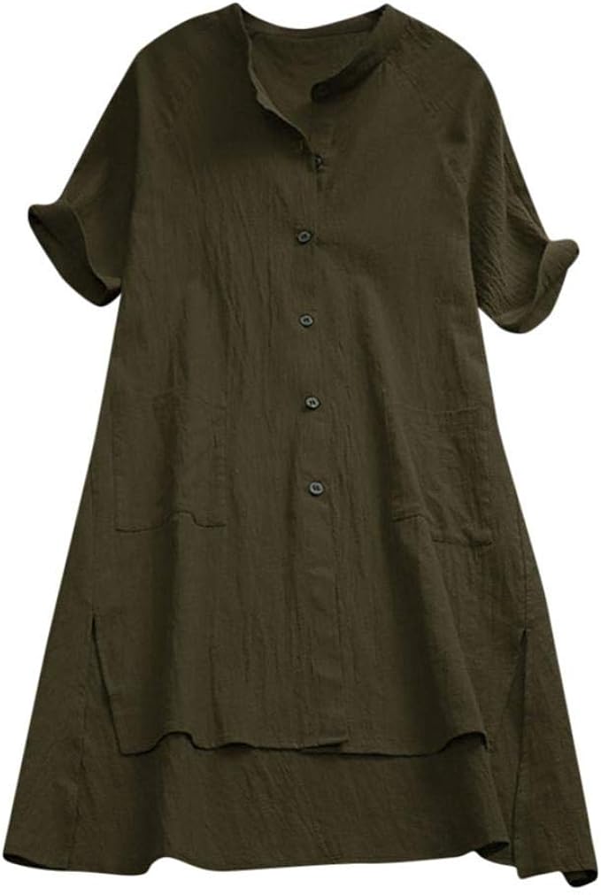 Shobdw Damen Knopfe Unten Kurzarmfrauen Vorne Kurz Hinten Lang Unregelmassige Saum Lose Solid Tunika Tops T Shirt Bluse Amazon De Bekleidung