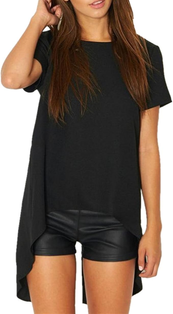 Damen Kurzarm T Shirt Vorne Kurz Hinten Lang Top Solid Rundhalsausschnitt Casual Amazon De Bekleidung