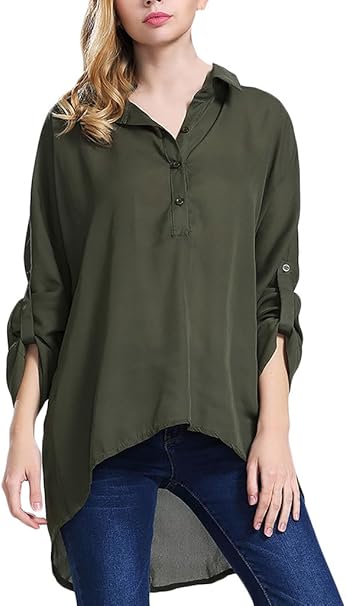 Damen Bluse Shirt T Shirt Tops Revers 3 4 Hulsen Vorne Kurz Hinten Lang Mit Knopfen Chiffon Bluse Dunn Baggy Atmungsaktiv Normallacks Chiffon S 2xl Amazon De Bekleidung