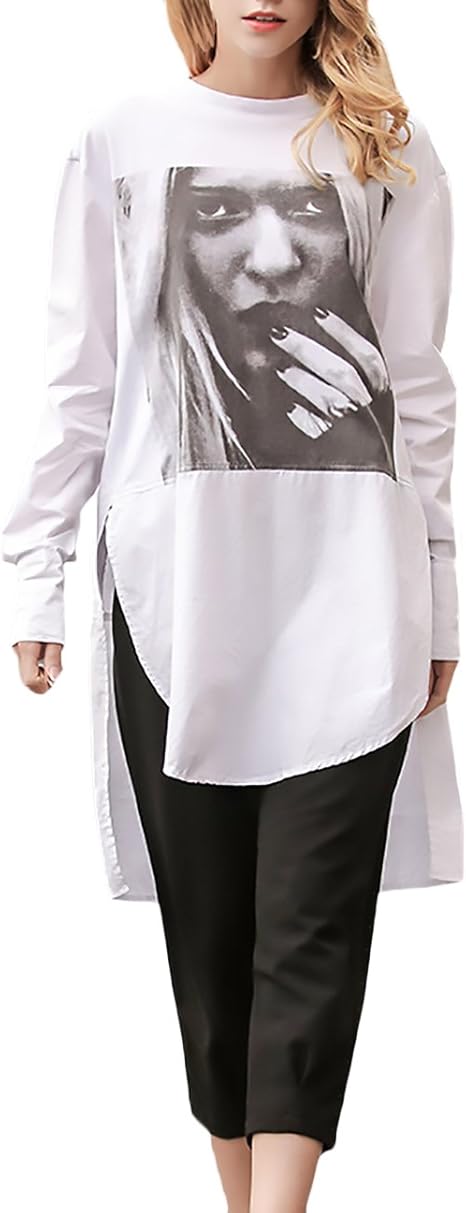 Damen Langarmshirts Elegant Herbst Winter Shirt Langarm Vorne Kurz Hinten Lang Longshirts Geoffnete Gabel Hem Druck Muster Blouse Baggy Casual Blusenshirt Festlich Weiss Partei T Shirt Amazon De Bekleidung