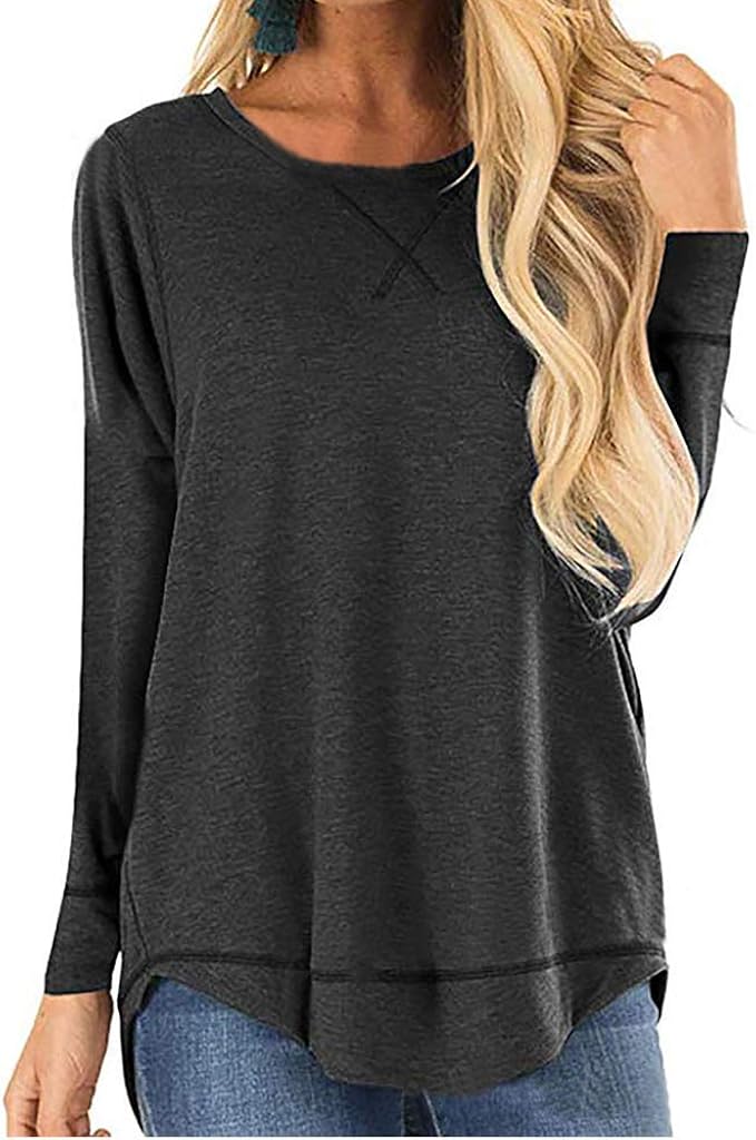 Zfqq Fruhling Und Herbst Langarm Einfarbig Rundhalsausschnitt Vorne Kurz Hinten Lang Top Damenbekleidung Amazon De Bekleidung