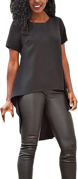 Fanmay Damen Elegant Top Tops Langarm Vorne Kurz Hinten Lang Rundkragen Unifarben T Shirt Langshirt Shirts Oberteil S Schwarz Amazon De Bekleidung