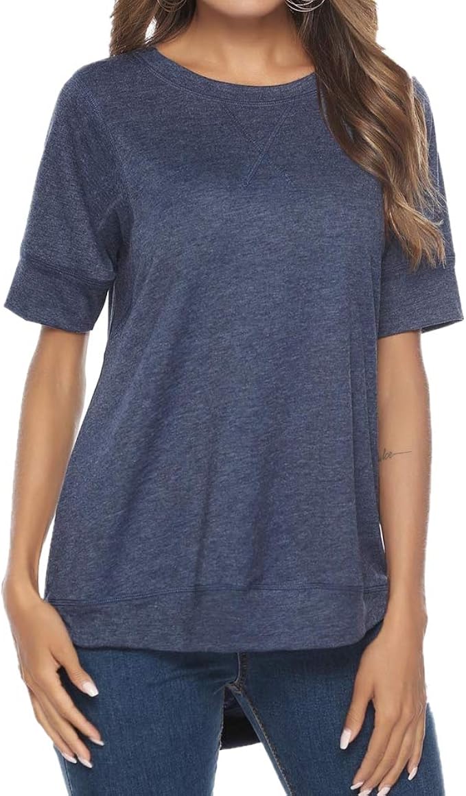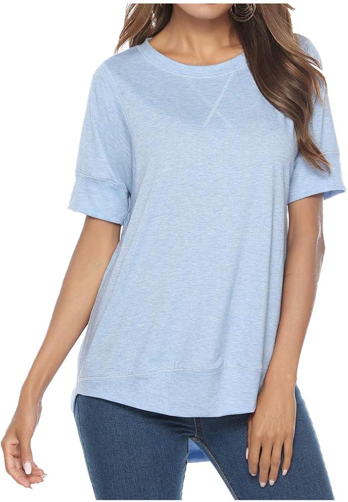 T Shirt Damen Elegant Sommer Kurzarm Rundhals Einfarbig Uni Farben Vorne Kurz Hinten Lang Shirt Hippie Mode Casual Irregular T Shirt Oberteile Top Amazon De Bekleidung