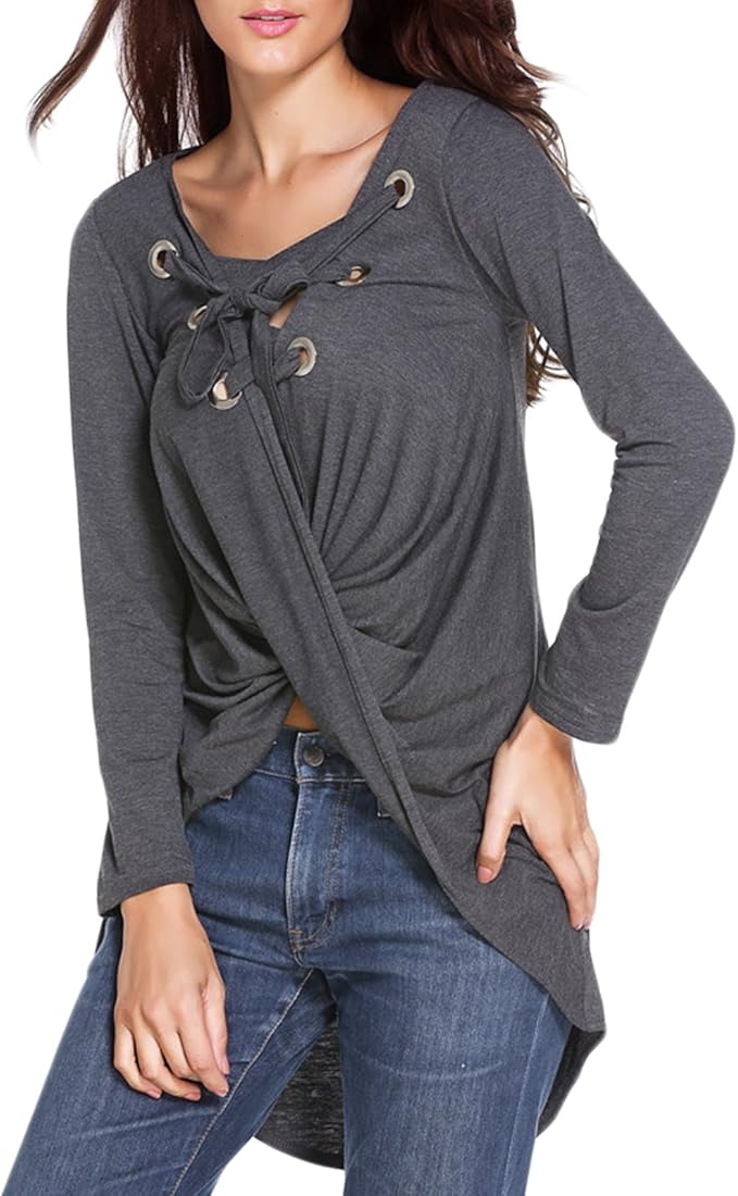 Frauen Mode V Ausschnitt Langarm Asymmetrisch Beilaufige Loose Vorne Kurz Hinten Lang Oberteile T Shirt Blusenbody Top Tops Grau Amazon De Bekleidung