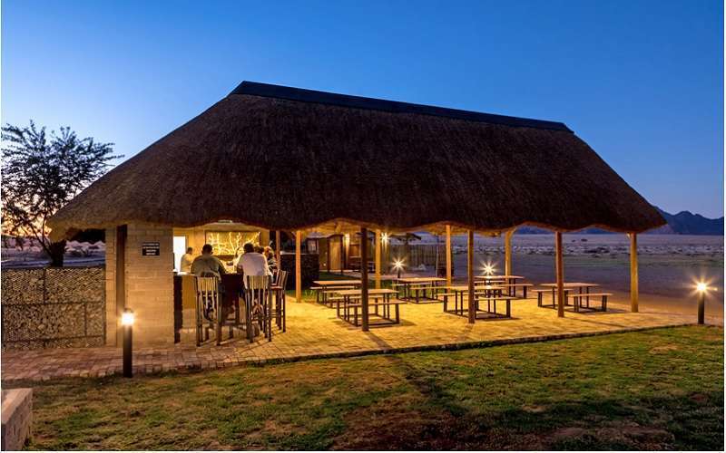 About Desert Camp Desert Camp is situated only 5 km from the entrance gate to Sossusvlei and Sesriem Canyon in the Namib Naukluft Park. Familyfriendly Kulala Desert Lodge Namibia has 23 thatched and canvas tents Take in the sweeping scenery on nature drives, walks and electric bikes. The main living area of Sossusvlei Wilderness Camp is under thatch and has a pool and deck area for dining under the stars There are daily morning excursions to the dunes, followed by al fresco breakfasts beneath the spreading camelthorn acacias.