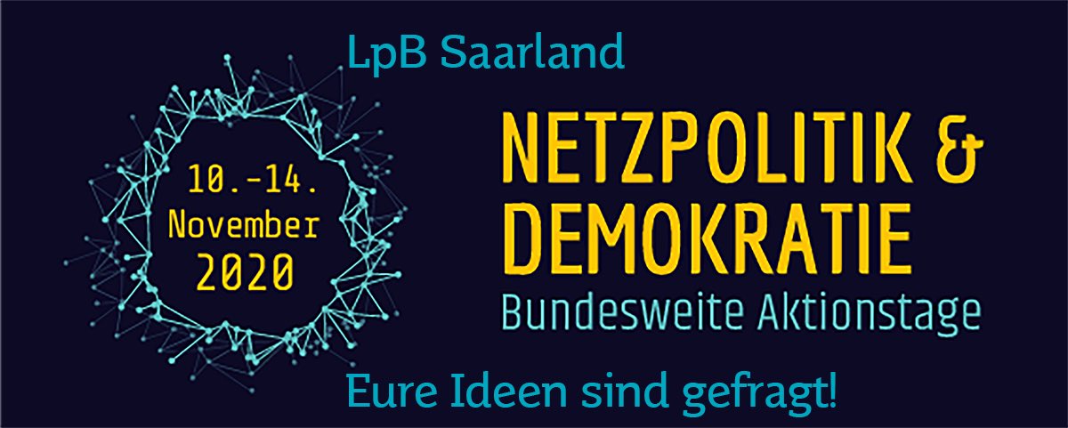 Landeszentrale fur politische bildung saarland. ONLINE KLASSE sein im OnlineUnterricht Schülerinnen und Schüler aktivieren "Online zu unterrichten" schafft neue didaktische, zeitliche und räumliche Möglichkeiten und fordert Lehrerinnen und Lehrer in der Planung und Durchführung von Unterricht neu heraus hier bitte weiterlesen. November 1957 schlug die Geburtsstunde der Landeszentrale für politische Bildung des Saarlandes Ihr 60jähriges Jubiläum feiert die Landeszentrale am kommenden Mittwoch, dem 22 November, um 1700 Uhr in der Saarbrücker Congresshalle/Saal West (Hafenstraße 12, Saarbrücken) mit zahlreichen Gästen aus den Bereichen Zivilgesellschaft, Politik, Bildung, Wissenschaft, Medien und Verwaltung. Landeszentrale für politische Bildung Thüringen Die Macht der Plattformen Politik in Zeiten der Internetgiganten Im Rahmen der bundesweiten Aktionstage Netzpolitik & Demokratie haben wir bei zwei Veranstaltungen mit Michael Seemann in Gera am 1211 und in Erfurt am 1311 über die Macht der Plattformen im Netz diskutiert.