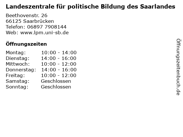 ᐅ Offnungszeiten Landeszentrale Fur Politische Bildung Des Saarlandes Beethovenstr 26 In Saarbrucken