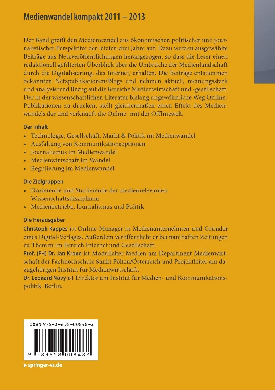 Medienwandel Kompakt 11 13 Netzveroffentlichungen Zu Medienokonomie Medienpolitik Journalismus Amazon De Kappes Christoph Bucher