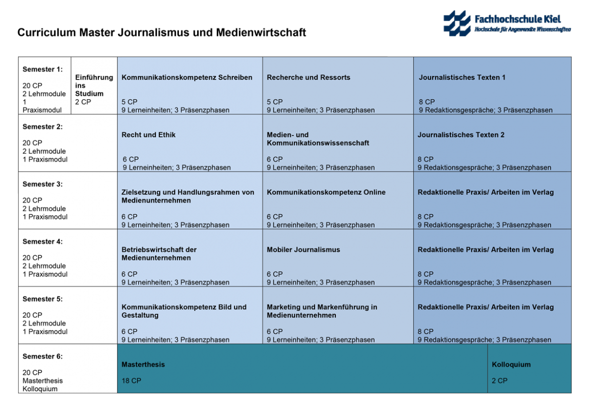 Curriculum Und Semesterinhalte Des Studiums Journalismus Und Medienwirtschaft Journalismus Und Medienwirtschaft An Der Fachhochschule Kiel
