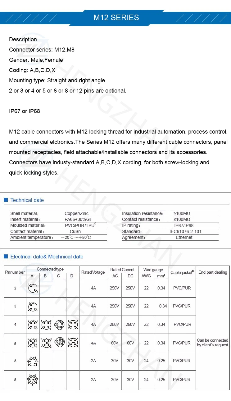 Robuste DCPowersteckverbinder M12 mit TKodierung für hohe Leistung (60V/12A) Zum individuellen und einfachen Anschluss von Automatisierungsgeräten. M12 2poliger Stecker M12 5poliger Stecker M12 8poliger Stecker M12 8poliger Stecker M12 12poliger Stecker M12 RJ45Stecker Werksanzeige Shenzhen Artek Electronics Co, Ltd wurde 10 in Shenzhen City, China, gegründet Wir bieten unseren Kunden in mehr als 50 Ländern OEM und ODMDienstleistungen mit hervorragendem Ruf an!. Der neue konfektionierbare CONEC M12 Steckverbinder mit Crimpanschluss bietet die entsprechende Lösung und ist in den Codierungen A, B, D und X erhältlich Die sehr kompakte und leichte Bauform eignet sich optimal für Einsatzgebiete mit geringem Bauraum und Gewicht 10 Gigabit / s ausgelegt.