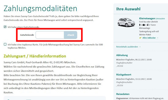 Sunny Cars Gutschein Mietwagen Ohne Kreditkarte Von Januar 21