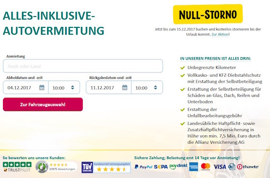 Sunny Cars Ohne Kaution Paket Keine Kreditkarte Kein Problem
