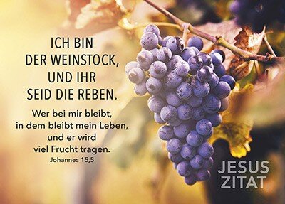 Der Testsieger sollte im Ich bin der weinstock ihr seid die reben Test mit den anderen Vergleichsartikeln den Boden wischen Hier sehen Sie unsere beste Auswahl an Ich bin der weinstock ihr seid die reben, während die TopPosition unseren Vergleichssieger ausmacht. Denn ohne mich könnt ihr nichts tun. Johannes 15,5Ich bin der Weinstock, ihr seid die Reben Wer in mir bleibt und ich in ihm, der bringt viel Frucht;.