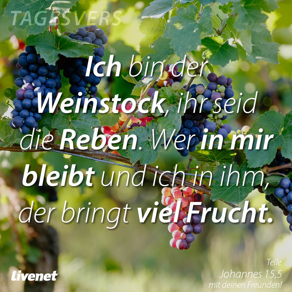 Livenet Ch Ich Bin Der Weinstock Ihr Seid Die Reben Wer In Mir Bleibt Und Ich In Ihm Der Bringt Viel Frucht Denn Getrennt Von Mir Konnt Ihr Nichts Tun Johannes